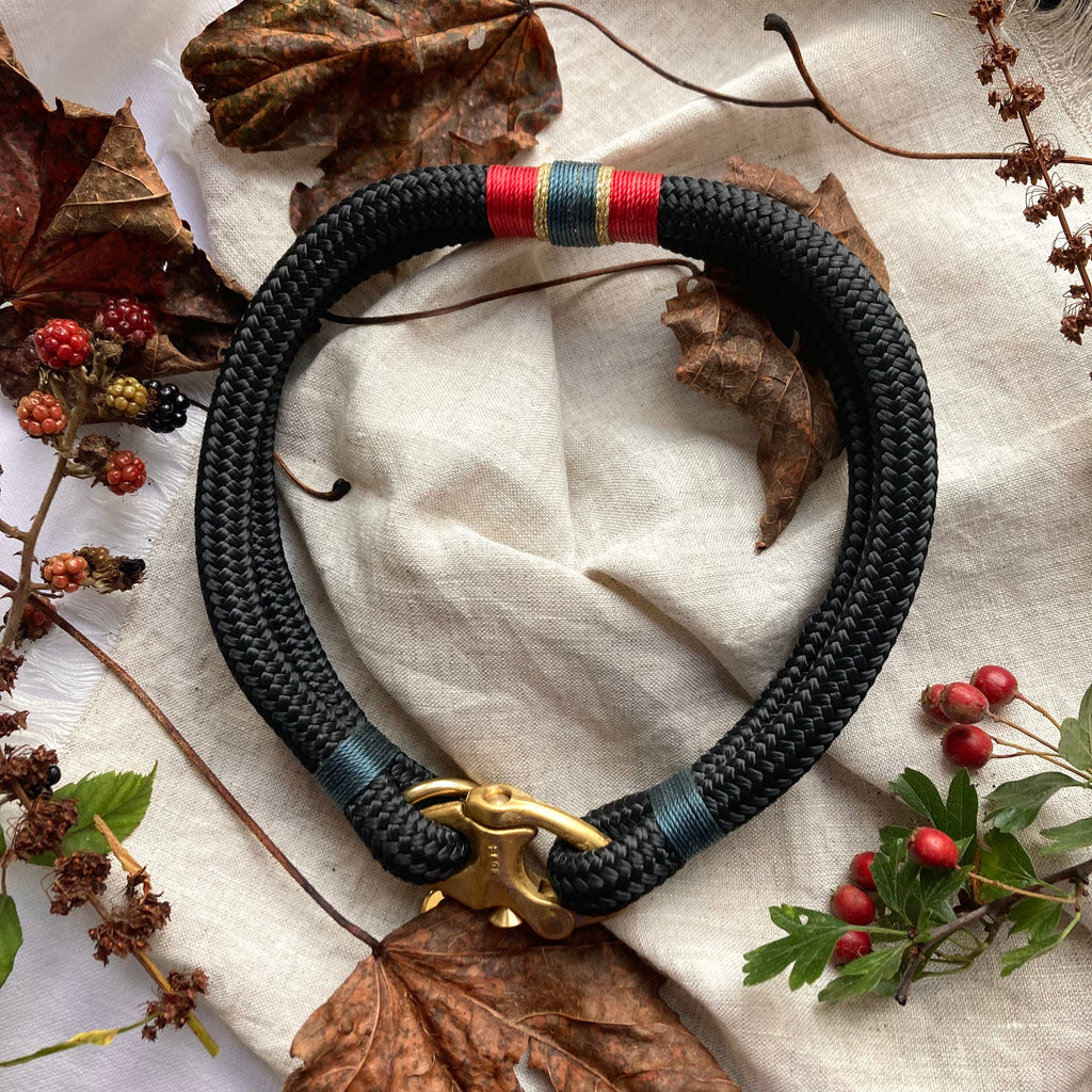 Oonalfie’s beautiful dog collars withstand the test of time with their quality, robust design. Each dog collar is individually handcrafted, in our Oxfordshire Studio from the highest quality, double braid, marine rope and finished with our signature solid bronze clips. These designer dog collars ooze quality and celebrate Oonalfie’s British heritage principles.